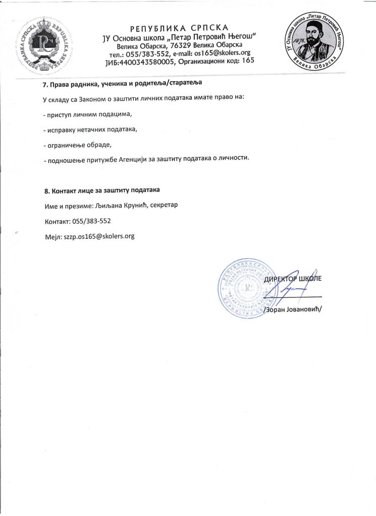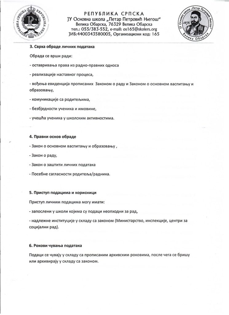 - Правилник о раду ЈУОсновне школе „Петар Петровић Његош“ Велика Обарска
