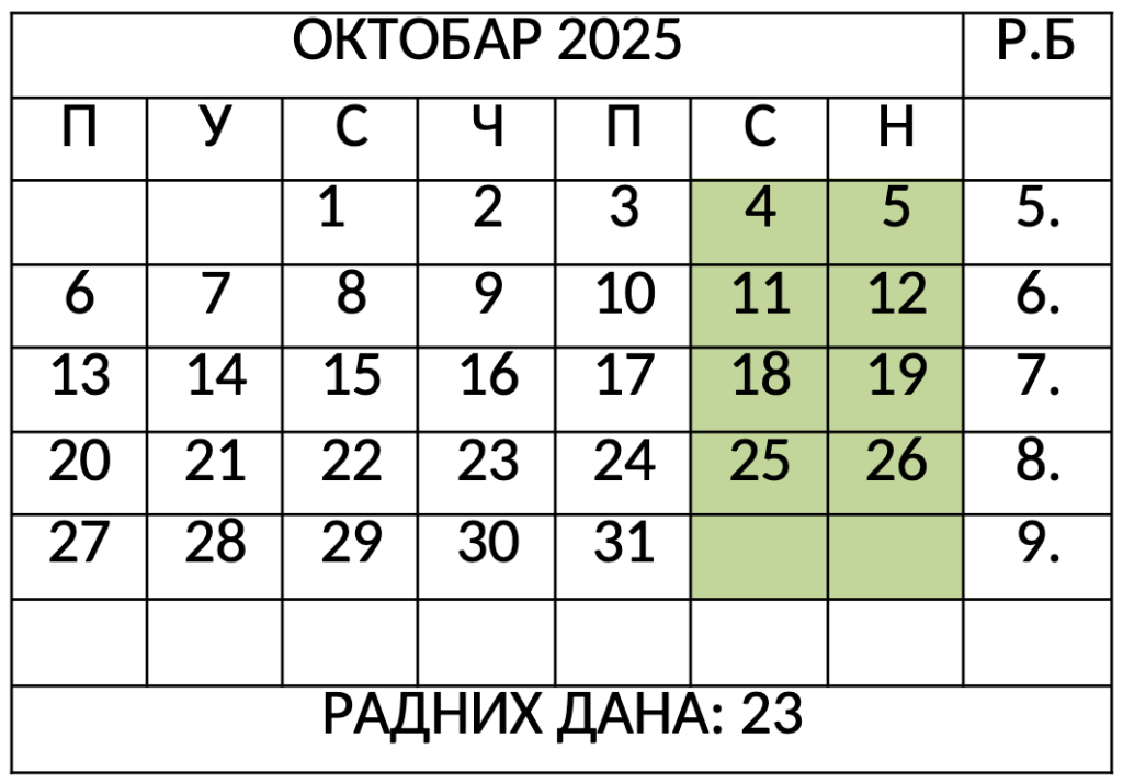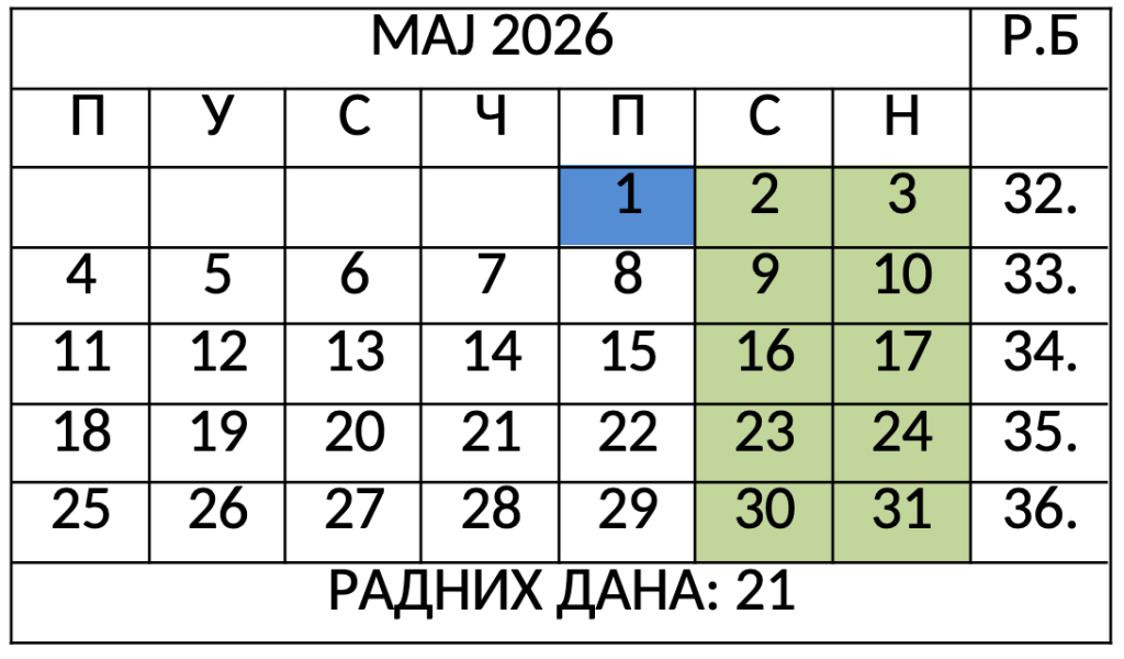 • 01.05.2025. (Празник рада)