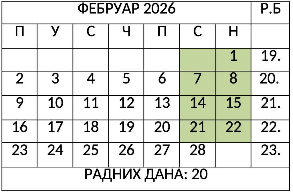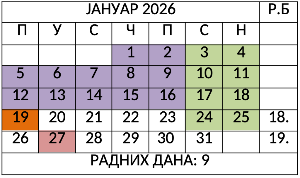 • 27.01.2026. (школска слава Свети Сава)
