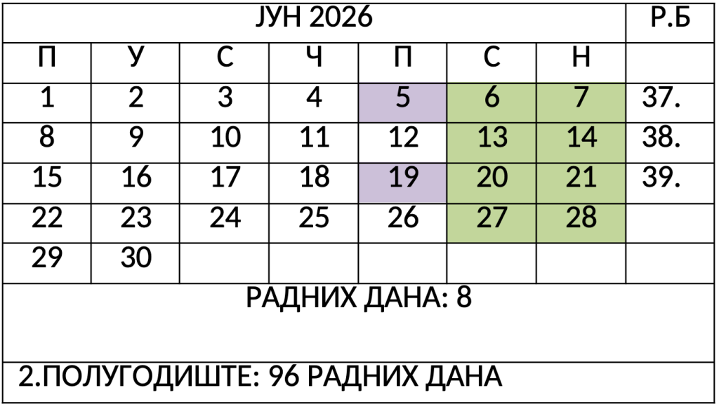 Настава за девете разреде се завршава 28.05.2026. (понедјељак -170. радни дан), а најкасније до 11.06.2026.(петак).
