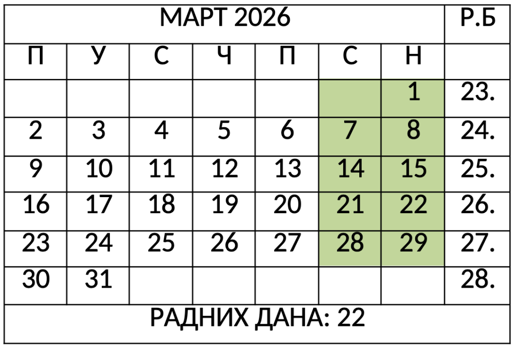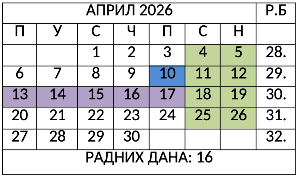 • 10.04.2026. (Васкршњи петак)