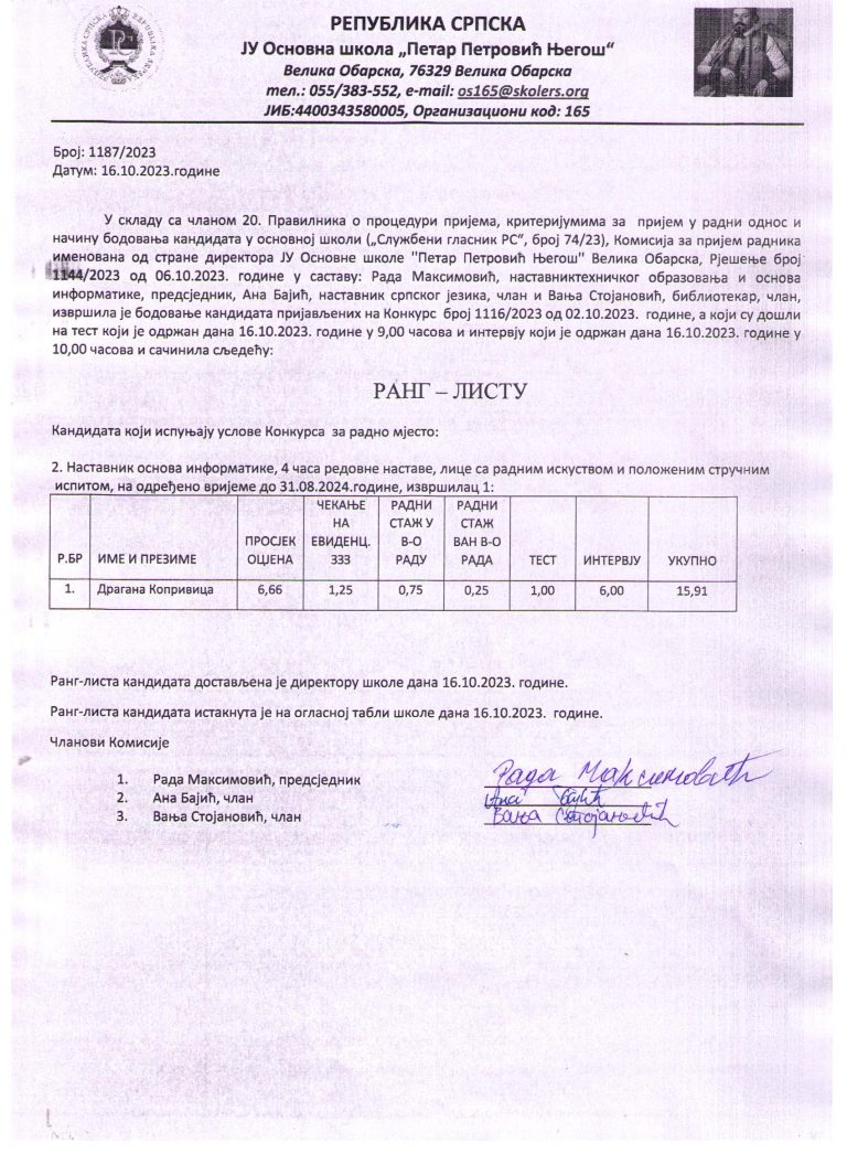 ОБАВЈЕШТЕЊЕ Директор школе, господин Зоран Јовановић, наложио је наставницима разредне и предметне наставе да ради ефикаснијег и бољег рада, здравља кичме ученика у циљу што бољег тјелесног држања ученика у развојном периоду, уведу нови модел обавјештења ученика на школским часовима…
