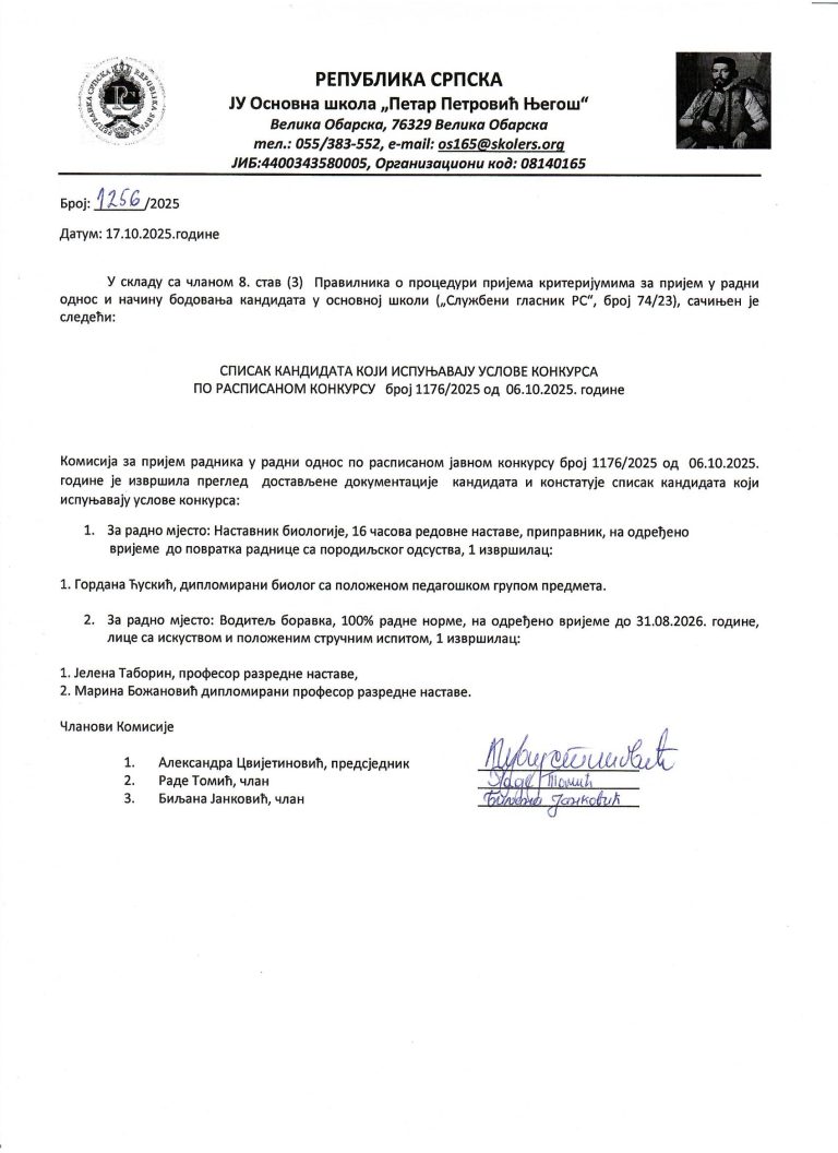 На такмичењу „Мисли мине”, које организује Црвени крст, екипа наше школе, коју је предводио наставник вјеронауке Драган Томовић, остварила је запажен успјех. Ученици седмог разреда Никола Сенић, Мирјана Ивановић и Данијела Танaцковић освојили су треће мјесто у конкуренцији девет екипа.…