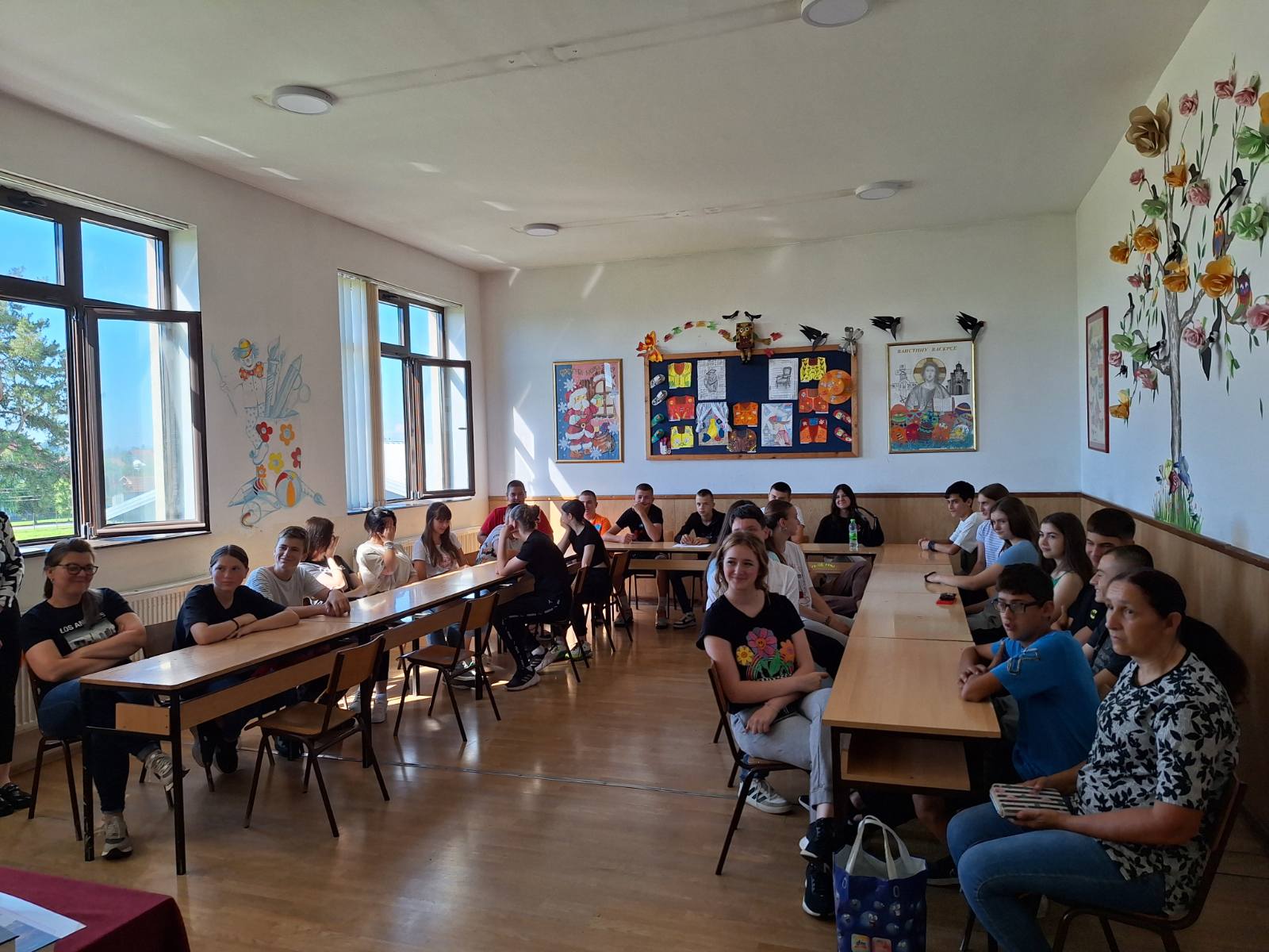 У нашој школи јуче је одржан свечани дочек за ученике деветих разреда, који је уприличио директор школе, Зоран Јовановић. Овим поводом, ученицима су уручена свједочанства о завршеном деветом разреду, а директор им је упутио искрене честитке и ријечи подршке за наставак њиховог образовања.