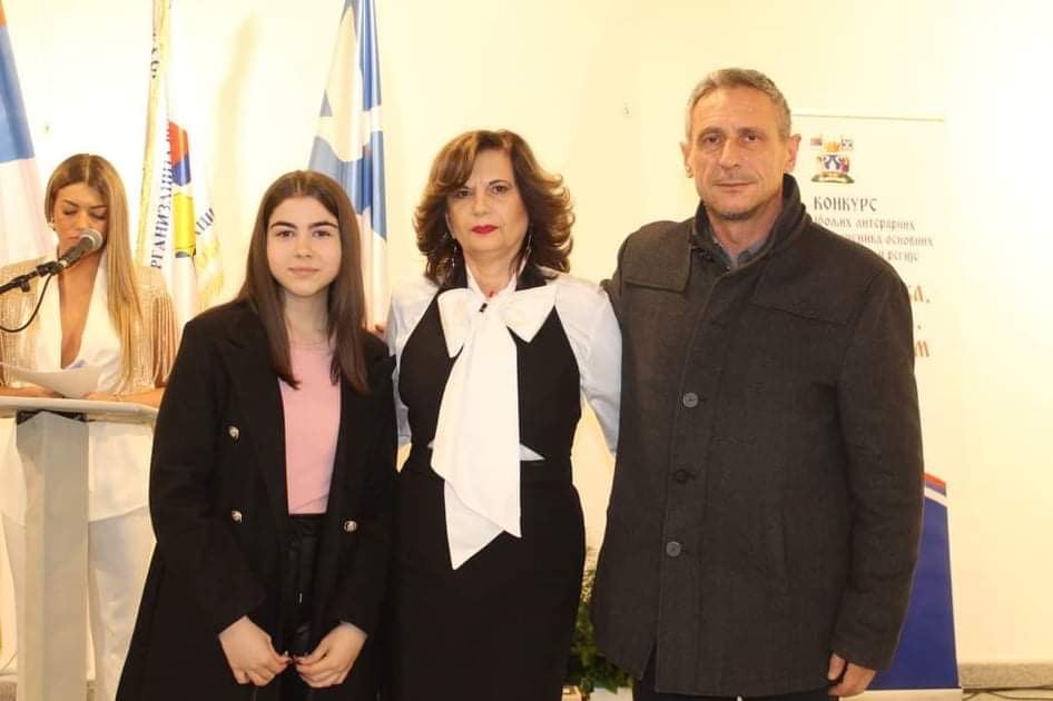 Овом приликом честитамо наставници ликовне културе Радмили Максимовић која је и ове године као и претходних година показала да квалитетним радом са дјецом, својим залагањем и знањем допринијела оваквом резултату. Честитамо ученици Дејани Кићић из VIII разреда поводом остварених резултата на конкурсу. Ученицама Славици Васић, Емилији Миловановић и Јовани Симић желимо много успјеха у даљем раду и школовању.