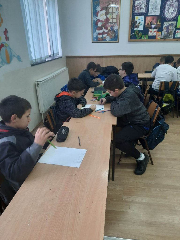 окружење за учење. Ученици VI- 1 и VI- 2 су формирали неколико група и направили цртеж на