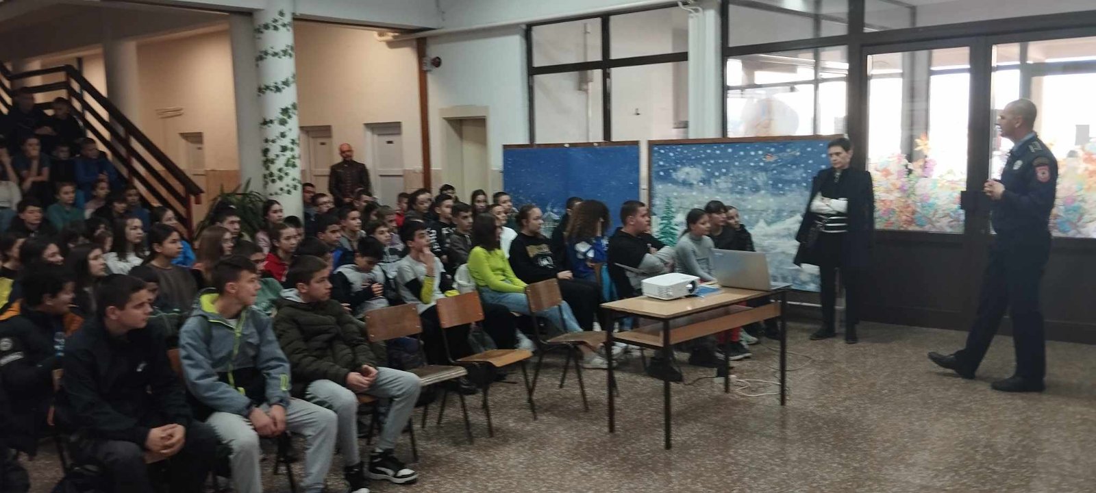 Како би новогодишњи и божићни празници прошли на миран и достојанствен начин припадници ПУ Бијељина Бобан Ковачевић и портпарол, Александра Симојловић  су данас у просторијама наше школе одржали едукативно предавање на тему „Петарде нису играчке“. Предавање је организовано у холу наше школе, а предавању су присуствовали сви ученици од 6. до 9. разреда. Ученици су информисани о могућим посљедицама које настају нестручним руковањем пиротехничких средстава, али и одредбама Закона који санкционишу употребу недозвољених пиротехничких средстава.