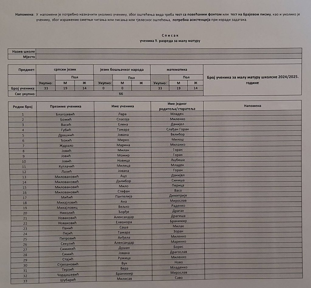 Обавјештење за ученике деветих разреда