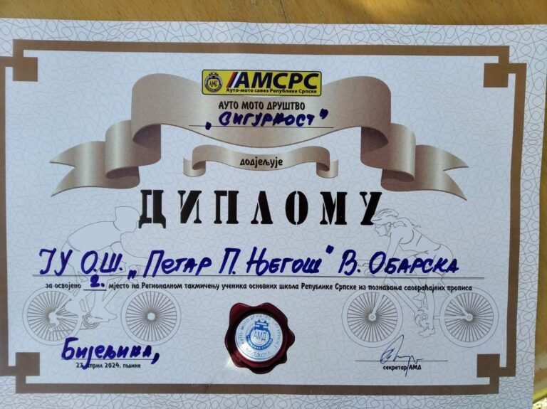 На традиционалном такмичењу у области безбједности у саобраћају, организованом од стране Ауто-мото савеза Републике Српске и 48 ауто-мото друштава, наша школа показала је изузетну снагу и спремност.