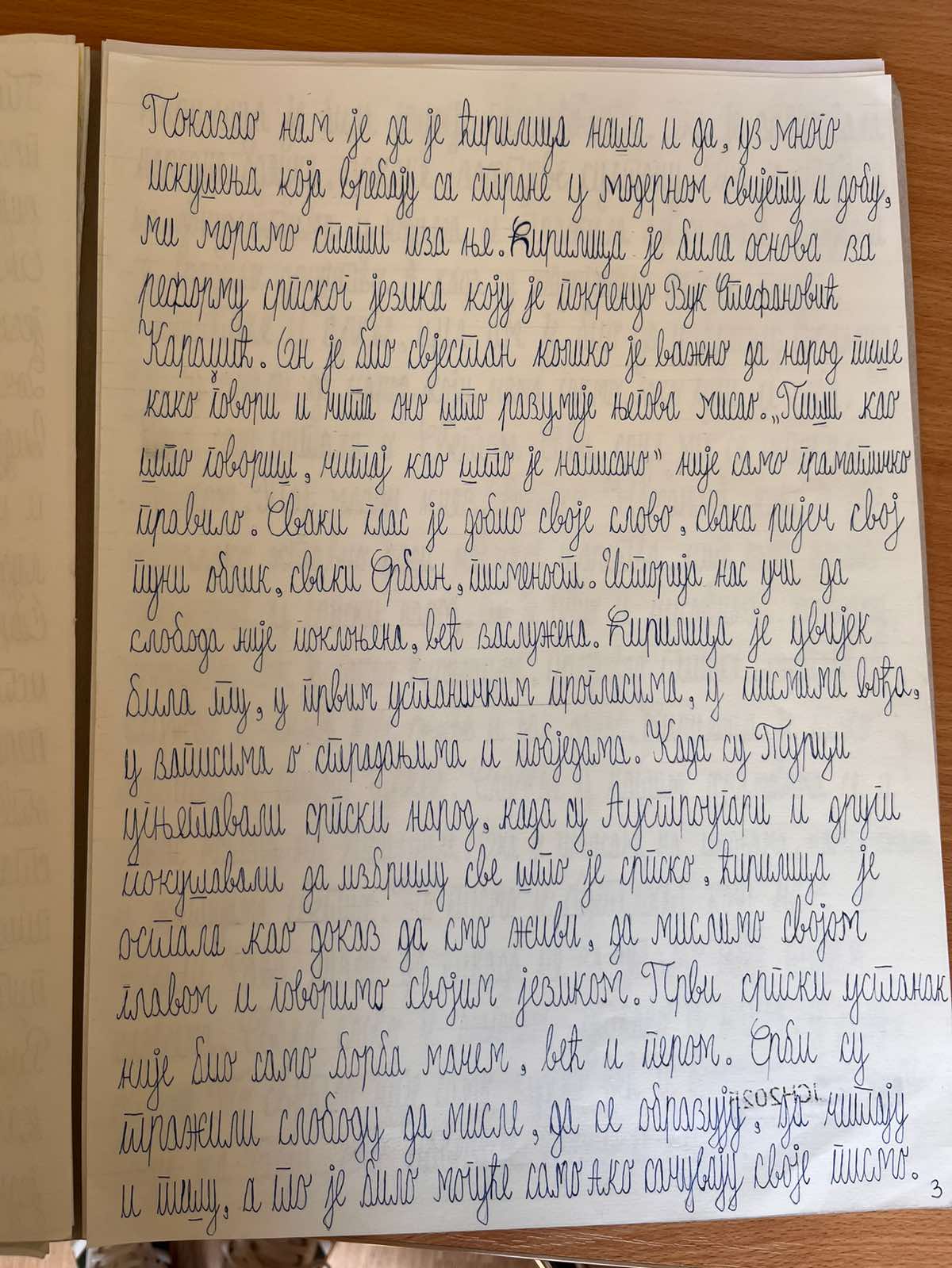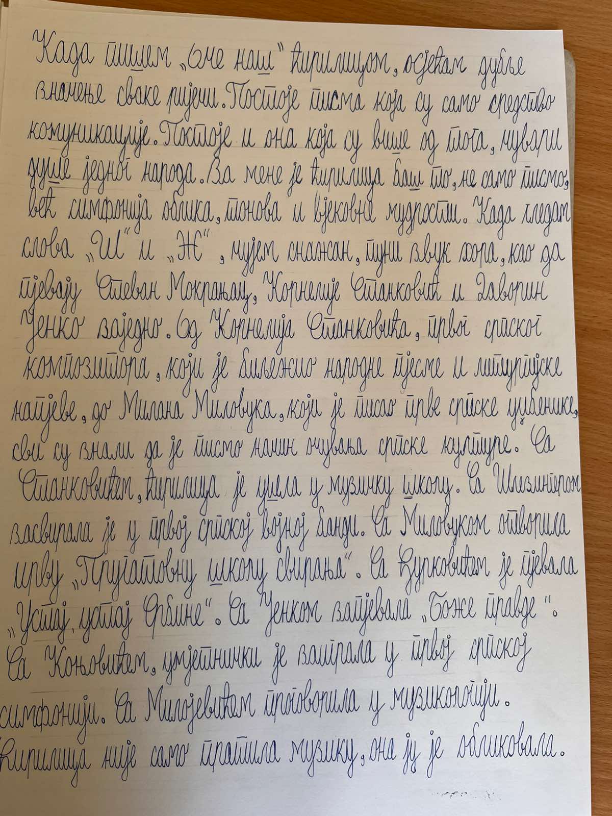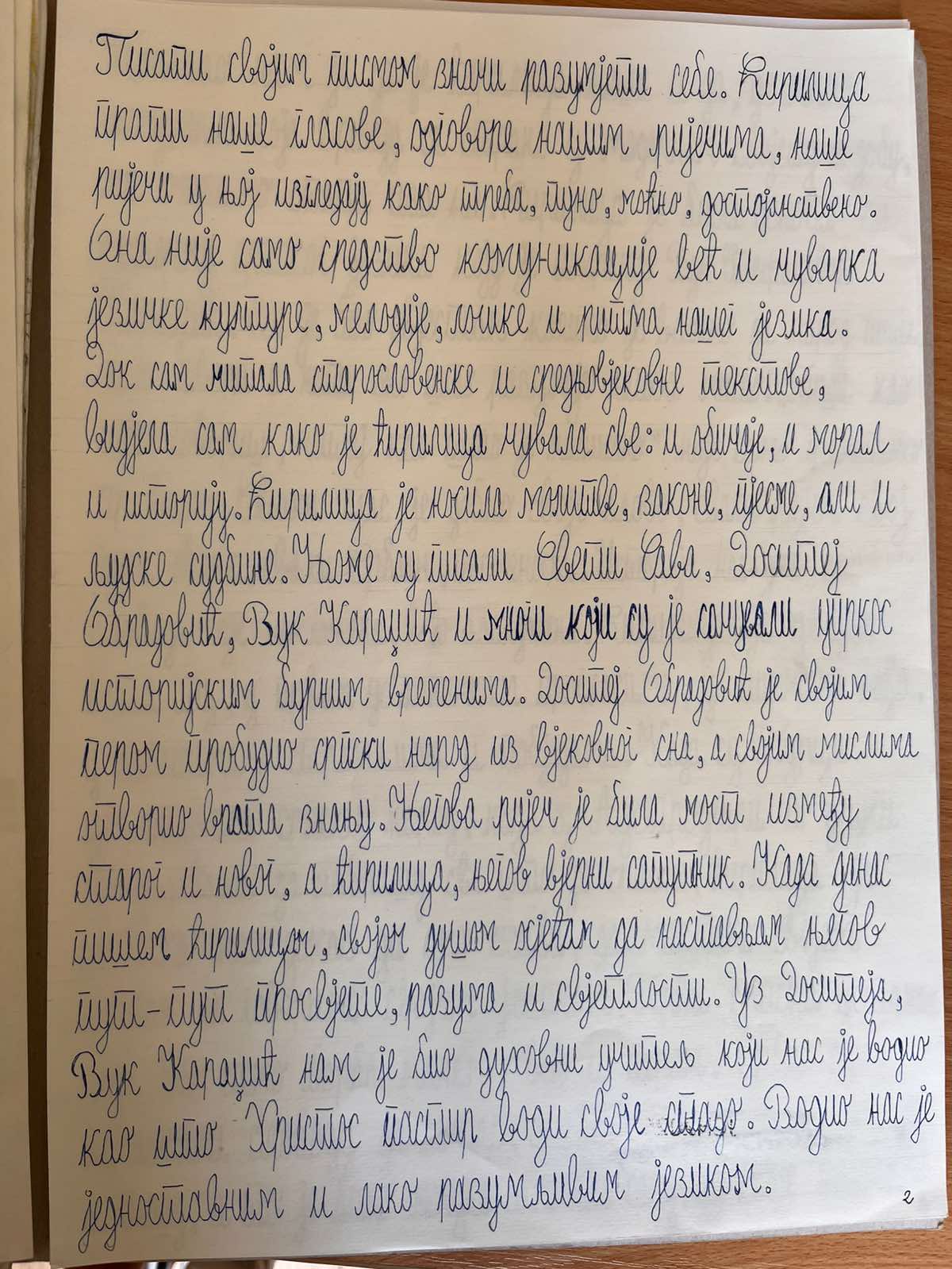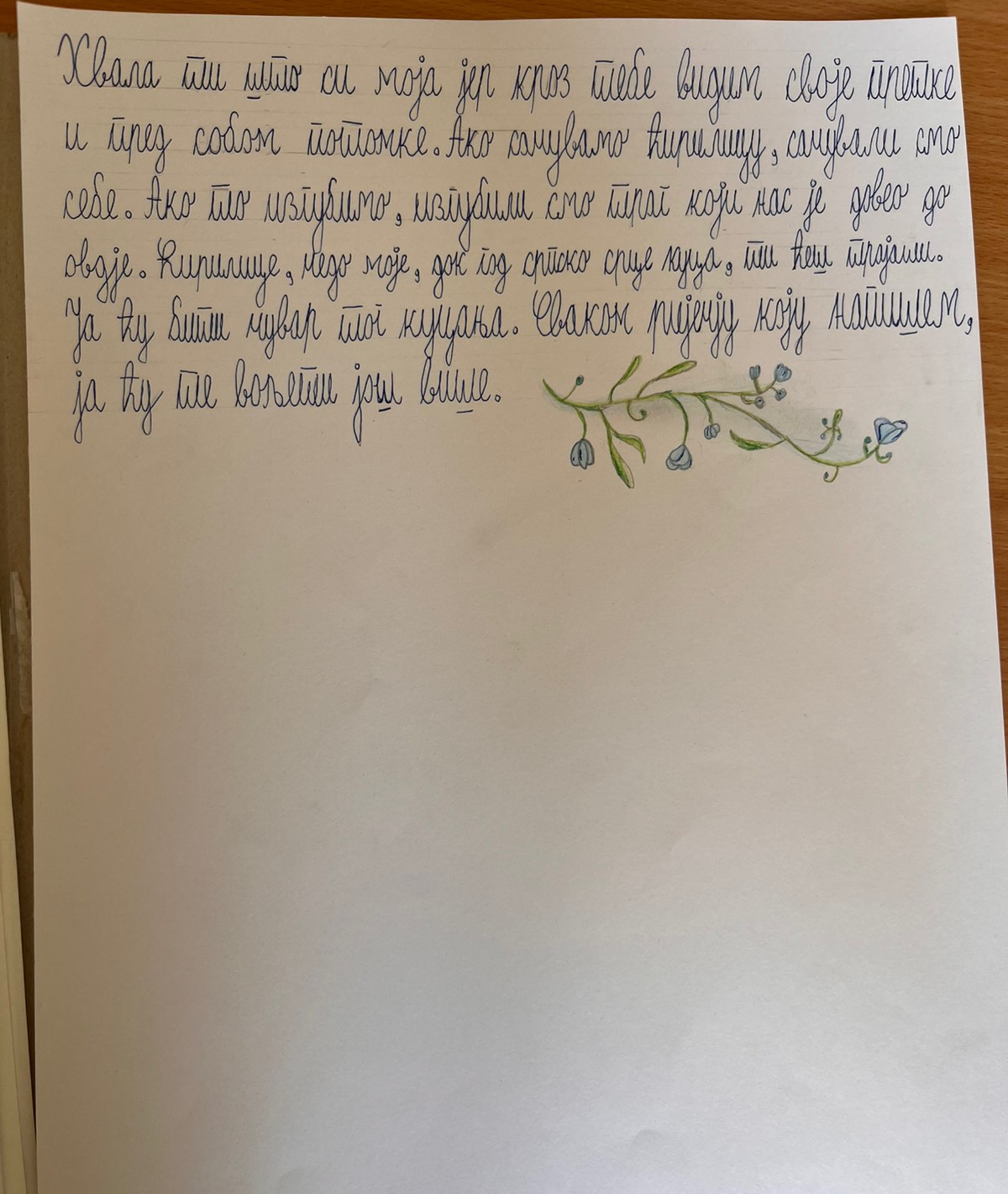 Понисни смо на наше ученице и наставнике који својим знањем, радом и љубављу према језику и писму чувају оно што нас као народ обликује и повезује са нашим културним насљеђем. Ћирилице, чедо наше – у сигурним си рукама!
