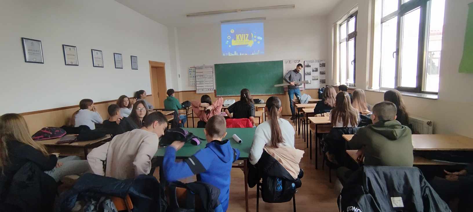 Након информативног дијела, ученици су имали прилику тестирати своје знање кроз квиз знања.Питања су обухватала широк спектар тема, укључујући географију Европе, различите европске језике и специфичности функционисања институција у ЕУ. Ова активност није само пружила прилику за стицање нових информација већ је и подстакла тимски дух међу ученицима.