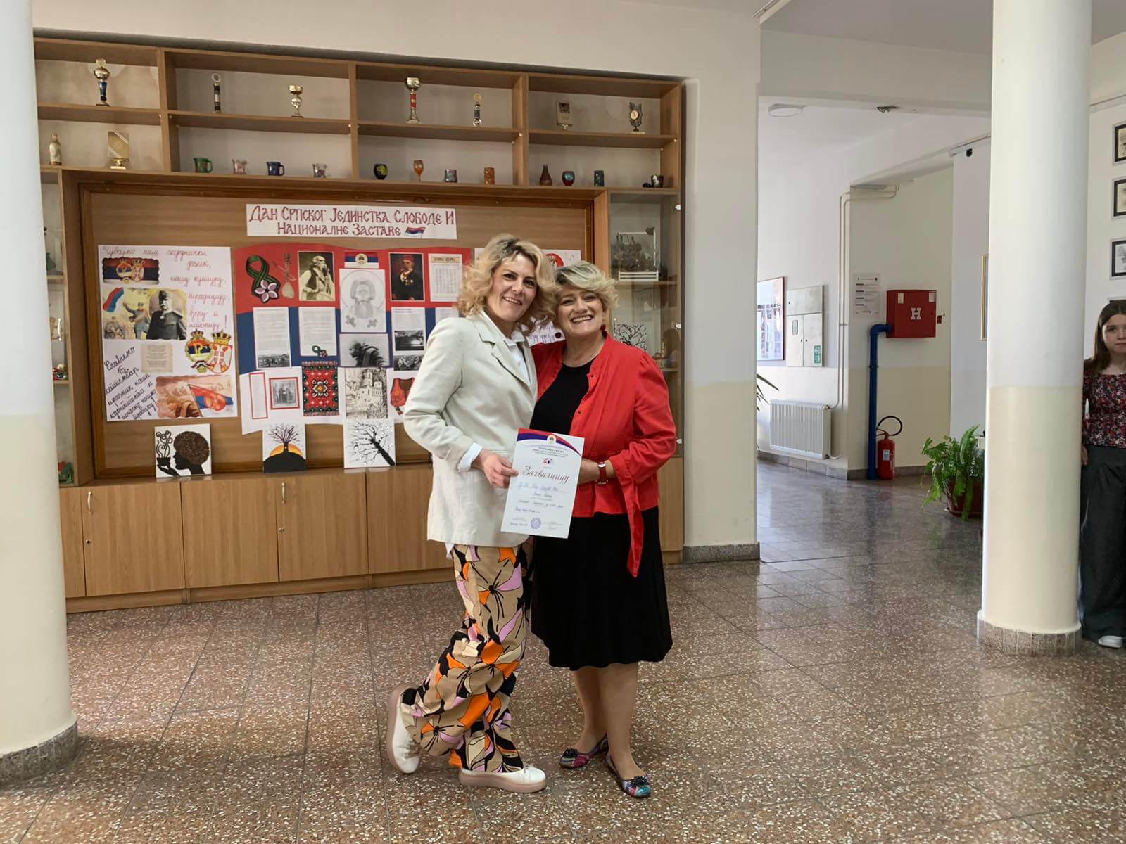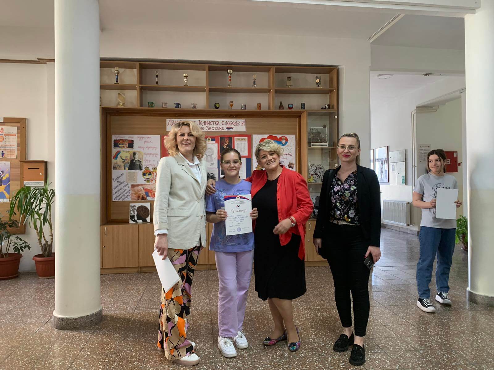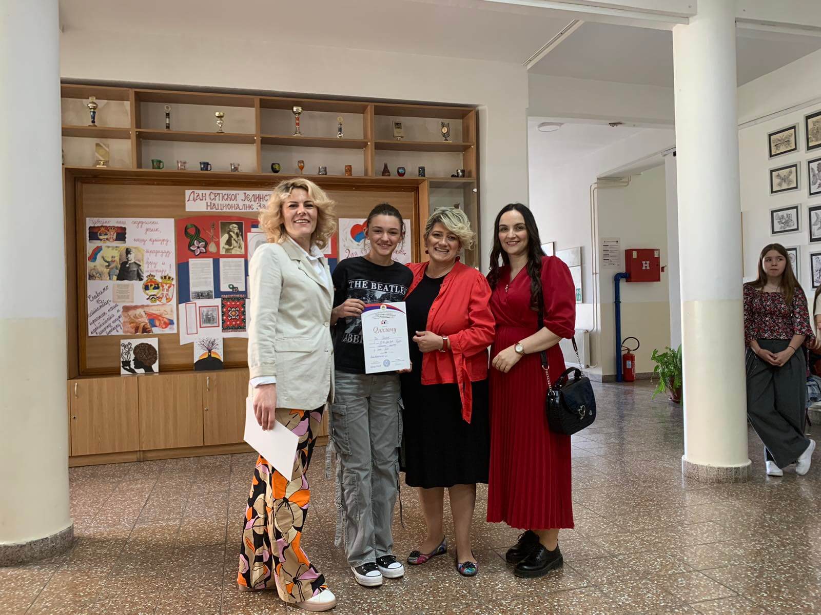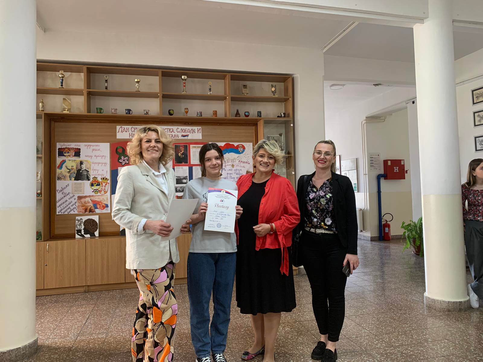 Педагог школе, Валентина Иванић, заједно са инспекторицом Даницом Мојић, свечано је уручила дипломе за прва три мјеста, као и захвалницу Свјетлани Шаренац, наставнику-ментору првопласиране ученице. Ученицима који су освојили четврто, пето и шесто мјесто, уручене су похвале за изузетне резултате и учешће на такмичењу.